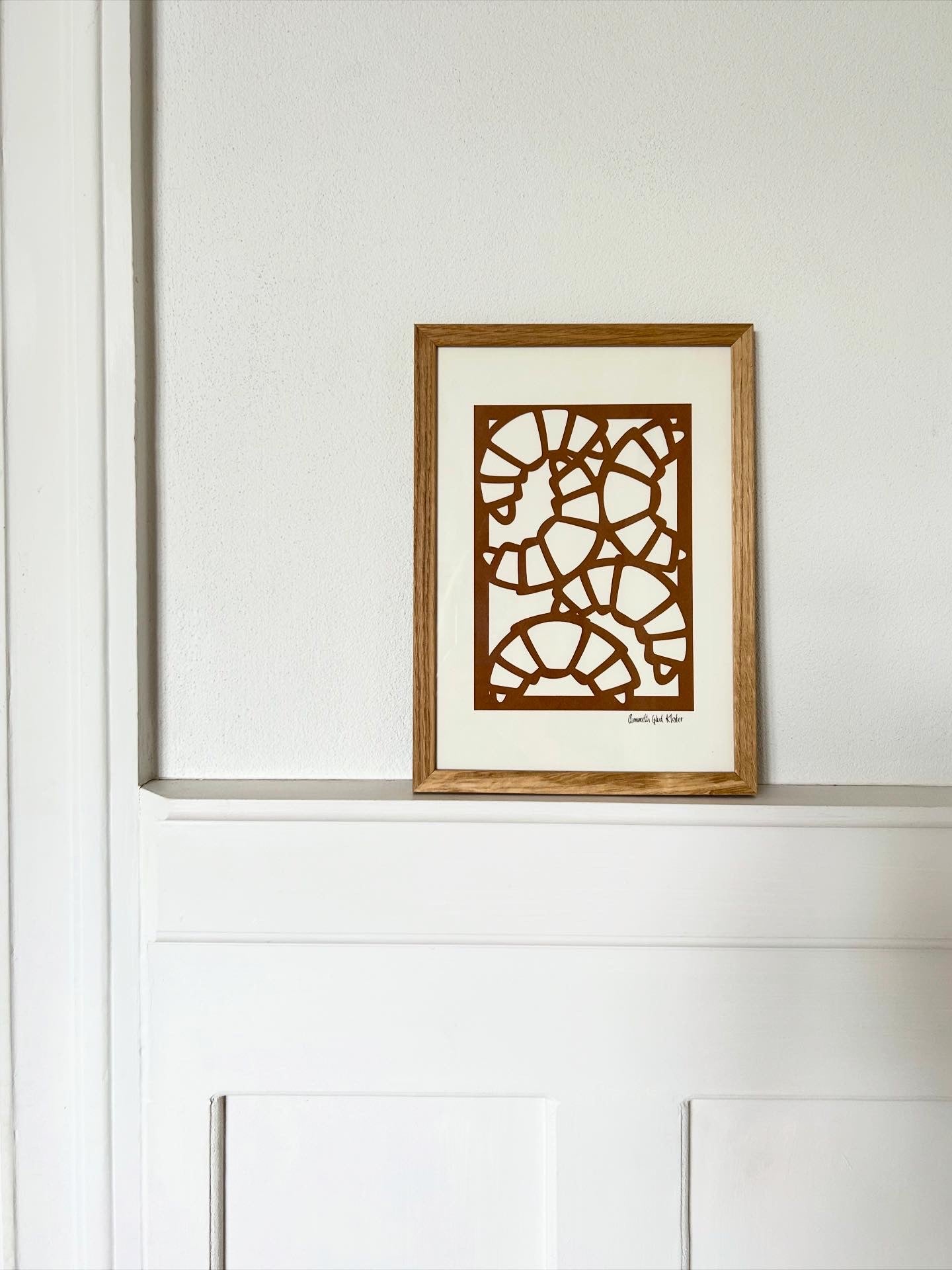 Caffelatte-farvede croissanter på knækket hvid baggrund i A4 (21x29,7cm.).
