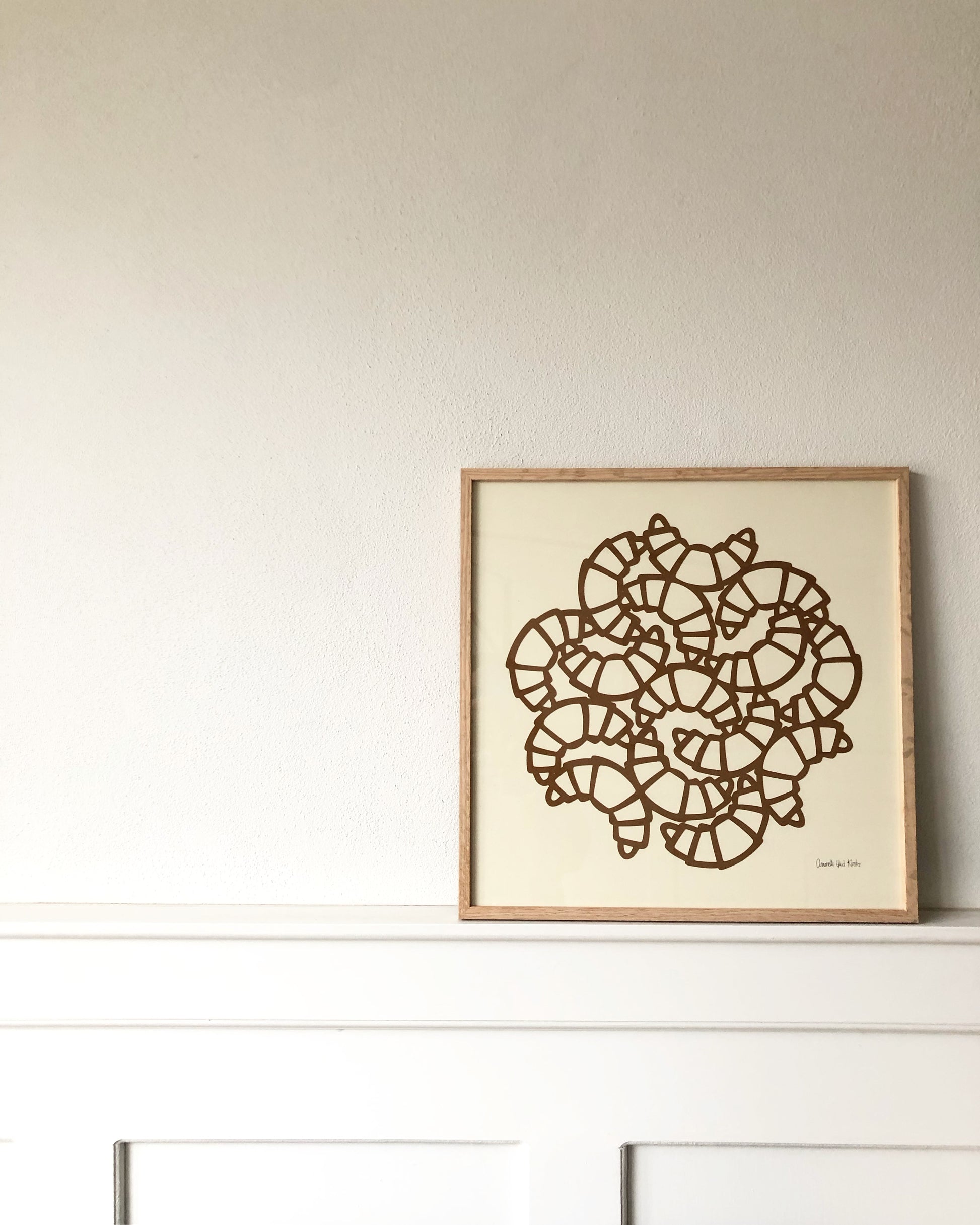Caffelattefarvede croissanter på creme, 40x40cm.