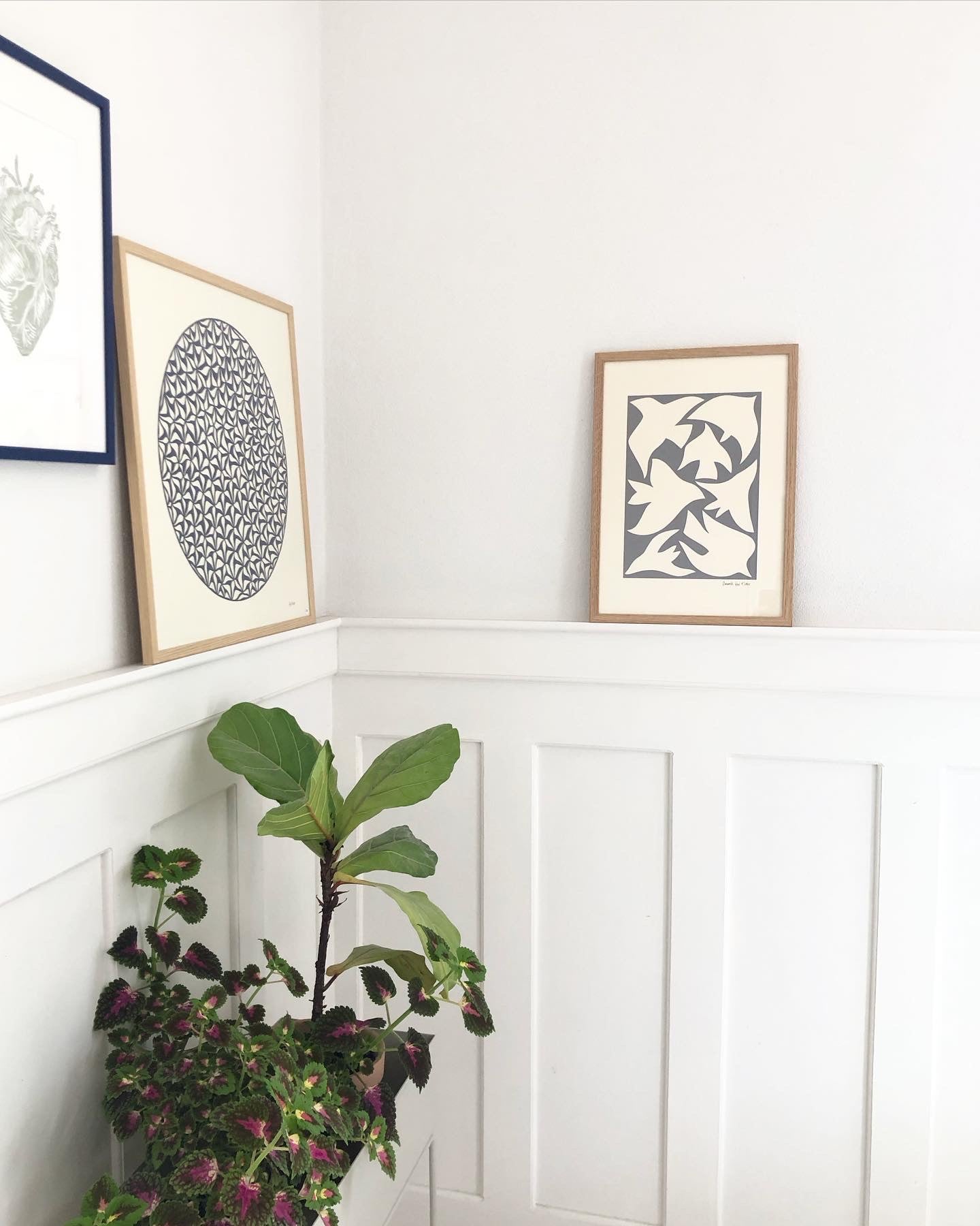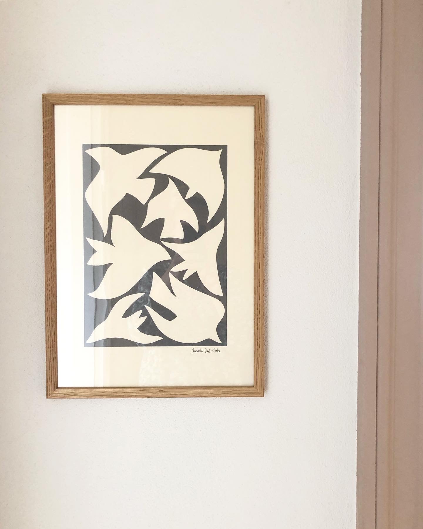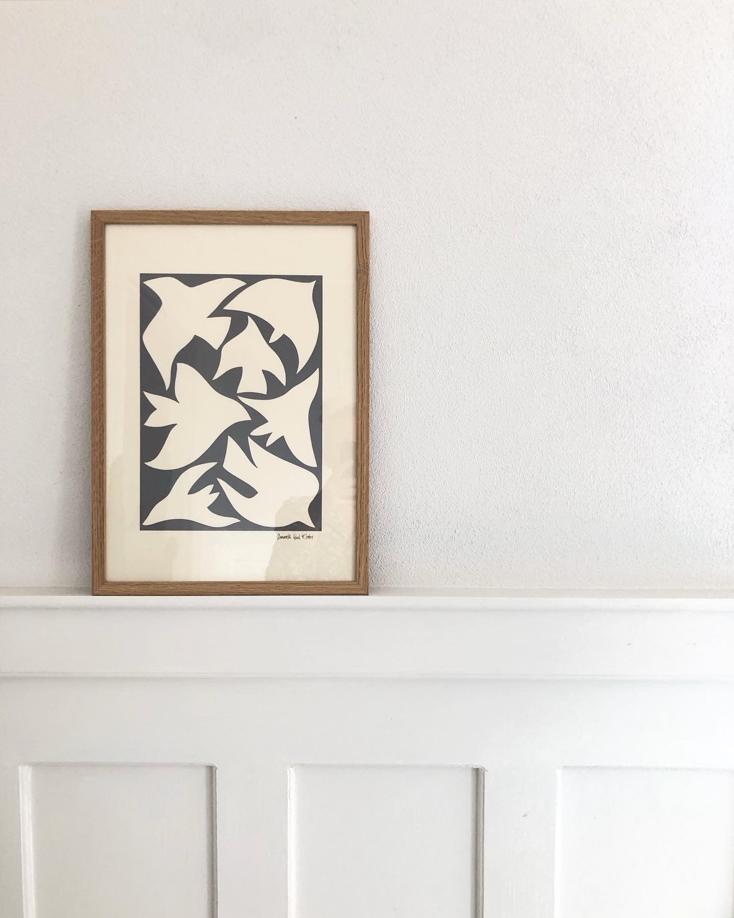 Fugle i varm grå på elfenben baggrund, str. A3 (29,7x42cm).