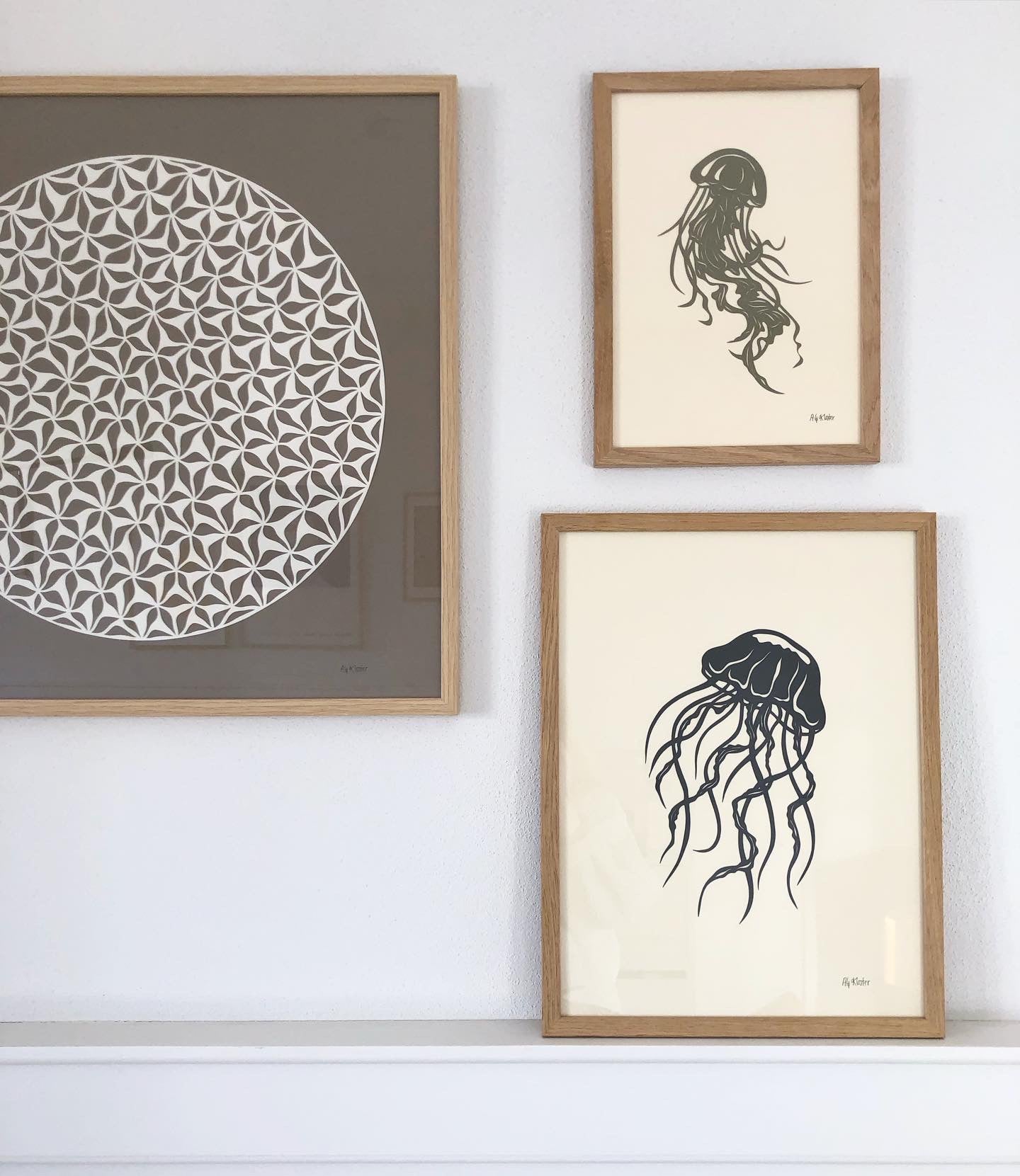 Goplen kommer indrammet i egetræsramme med glas. Ønsker du papercuttet uden ramme, kan du sende mig en besked på Instagram eller Facebook.