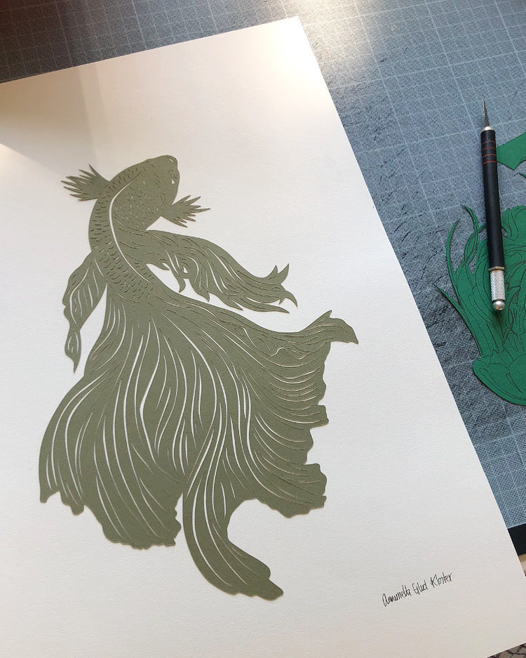 Papercuttet er håndskåret og unikt, lavet i fransk karton af bedste kvalitet.