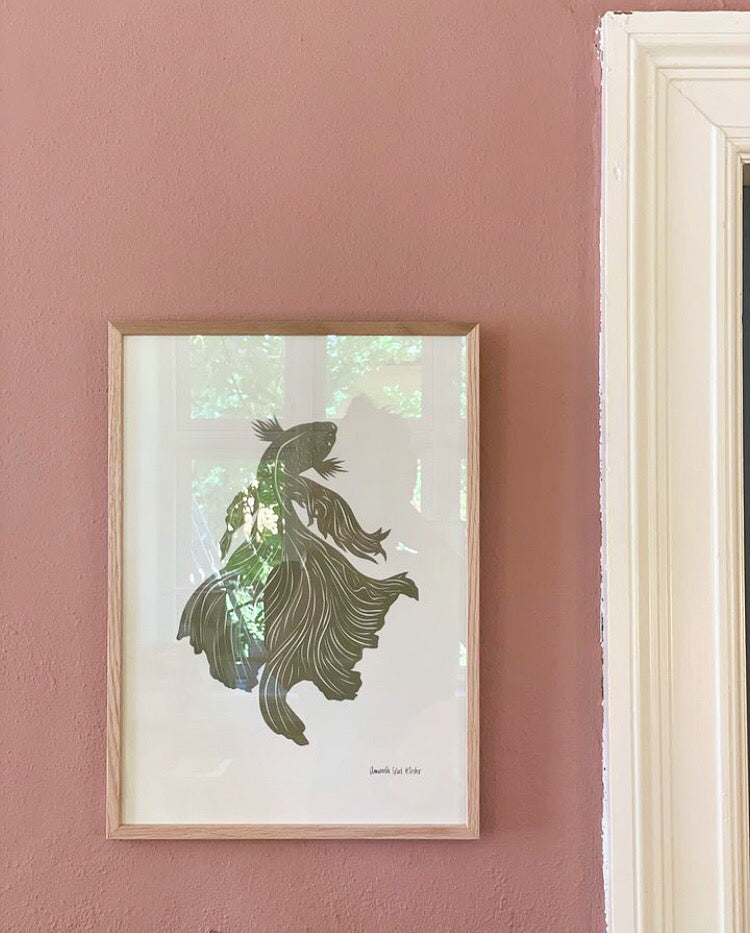 Papercuttet kommer indrammet i egetræsramme med glas. Hvis du ønsker papercuttet uden ramme, kan du sende mig en besked på Instagram eller Facebook.